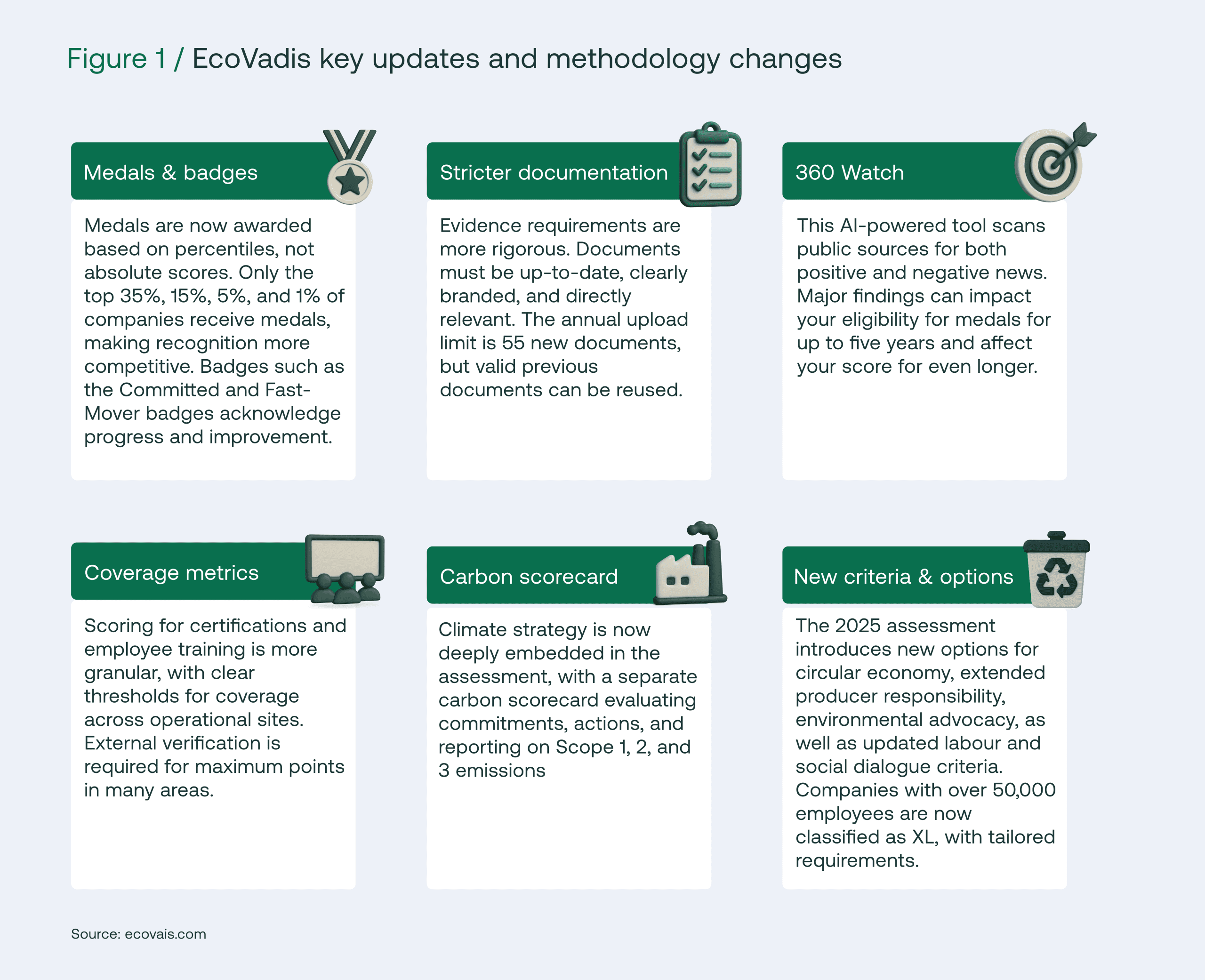 EcoVadis has raised the bar to ensure medals reflect genuine sustainability leadership and drive continuous improvement. This shift rewards proactive, high-impact initiatives and encourages all companies to strive for excellence.